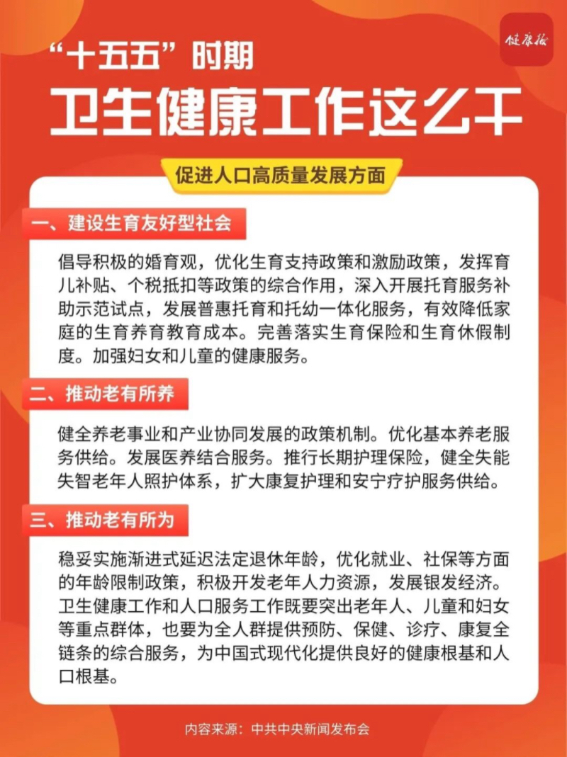 中共中央今天(10月24日)上午举行新闻发布会,介绍和解读党的二十届四中全会精神。国家卫生健康委党组书记、主任雷海潮在会上详解了“十五五”时期卫生健康工作要点,快来看看都有哪些吧!