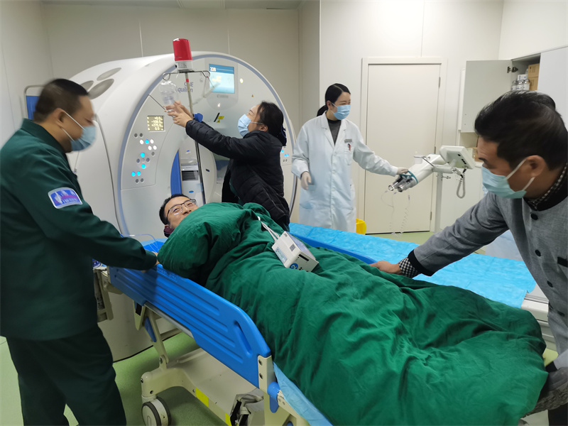 演练中,各环节衔接紧密、高效协同:急诊科护士 3分钟内完成患者分诊,启动绿色通道并建立静脉通道;10分钟时,患者被转运至CT室,影像科技师已提前待命,仅用8分钟就完成头颅CT平扫与头颈CTA+CTP检查,排除脑出血并锁定大血管闭塞位置;神经内科医生同步抵达,5分钟内完成NIHSS评分,与家属充分沟通后启动静脉溶栓;在溶栓进行的同时,取栓团队(介入手术室、麻醉科)同步响应,NICU 提前备好监护设备,神经外科做好外科干预准备 —— 整套流程环环相扣,完美践行 “患者未到、信息先到” 的预警机制,为实战中的生命救援积累了宝贵经验。