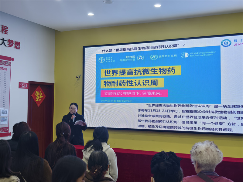 “世界提高抗微生物药物耐药性认识周”是全球年度宣传活动,于每年11月18-24日举行,旨在通过“同一个健康”方针,凝聚全球力量应对抗微生物药物耐药性问题。为响应2025年“立即行动:守护当下,保障未来”的全球主题及湖北省药学会相关通知要求,荆门市人民医院联合龙泉社区卫生服务中心、白龙社区,于11月19日上午在白龙社区开展了专场科普讲座。