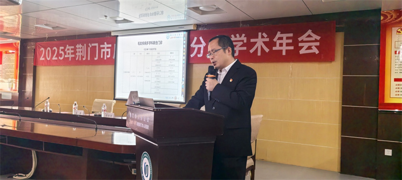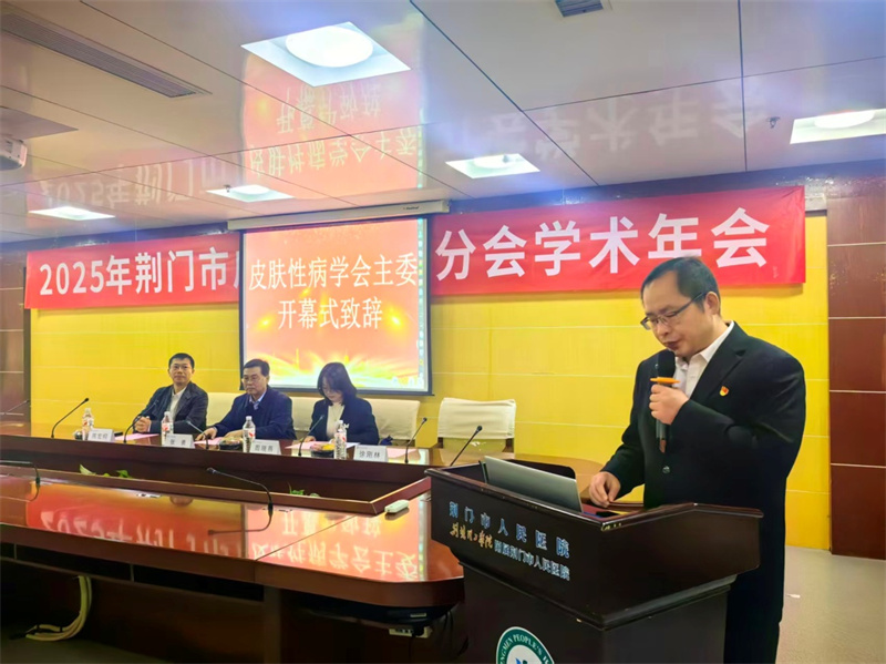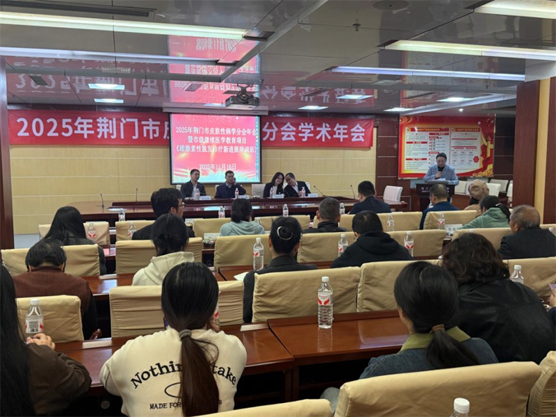 2025 年 11 月 16 日上午,2025年荆门市医学会皮肤性病学分会学术年会暨继续教育项目《雄激素性脱发诊疗新进展培训班》在荆门市人民医院召开。武汉大学中南医院皮肤科主任 陈宏翔、襄阳市中心医院皮肤科主任鲁巧云、荆州市中心医院皮肤科主任孙毅、荆州市中心医院张秋秋以及荆门市卫生界学会办公室主任周晓燕,荆门市人民医院党委书记张勇,荆门市医学会皮肤性病学分会主任委员、荆门市人民医院皮肤科主任徐刚林,荆门市皮肤病防治院副院长黄玉梅,荆门市医学会皮肤性病学分会副主任委员、荆门市中心医院皮肤科主任余先华,荆门市医学会皮肤性病学分会副主任委员佘小光,荆门市医学会皮肤性病学分会副主任委员陈娟娟,荆门市医学会皮肤性病学分会副主任委员张靖,荆门市医学会皮肤性病学分会副主任委员陈林,荆门市医学会皮肤性病学分会副主任委员李俊松、荆门市医学会皮肤性病学分会常务委员杨帅等出席会议,以及各县市医院皮肤科负责人参会。