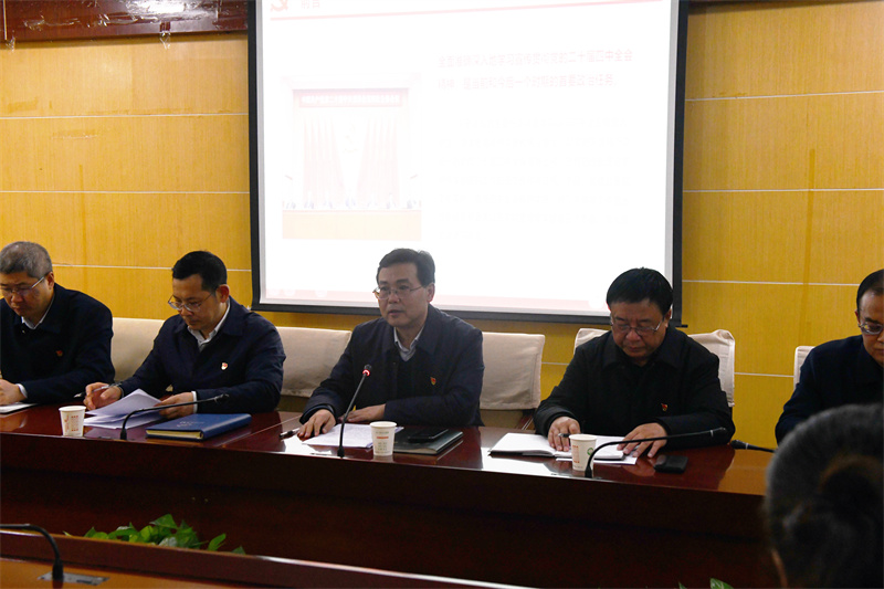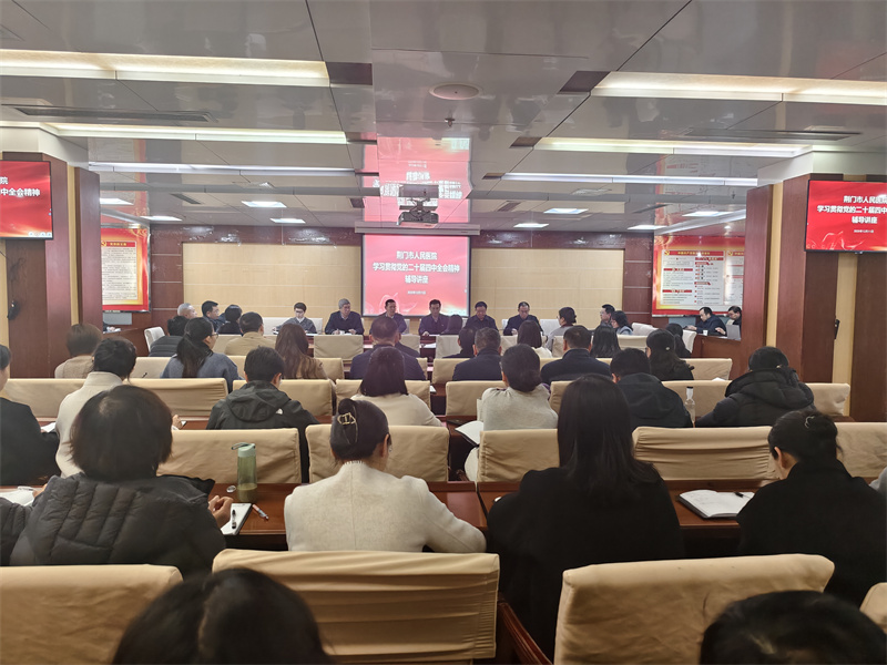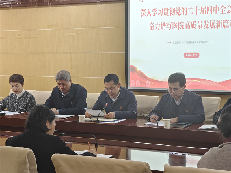 2025年12月11日下午,市人民医院在门诊七楼会议室召开学习贯彻党的二十届四中全会精神辅导讲座。院党委书记张勇作题为《深入学习贯彻党的二十届四中全会精神 奋力谱写医院高质量发展新篇章》的专题报告,党委副书记、院长李军华主持会议,全院中层干部及党员代表参加学习。